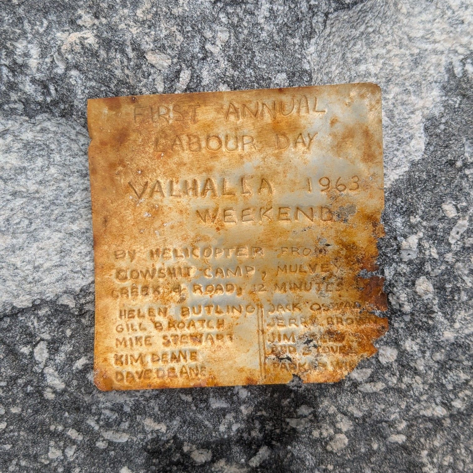 This plaque was found in 2025 by Cam Shute in Robertson Basin.