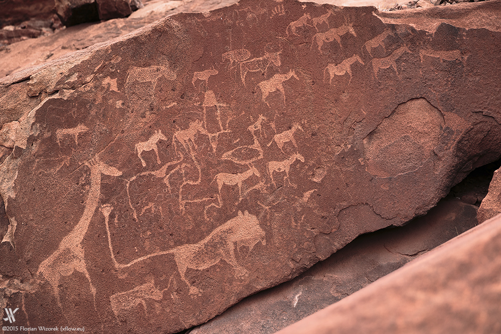 A Unesco World Heritage Site, it is one of the most extensive rock galleries on the continent. 2500 individual engravings dating back 6,000 years have been discovered. The work of ancient San hunters in 6 distinct phases. Guides compulsory. Fee 60$. Most of the panels are ok and giraffes, rhinos, some elephants, and one panel, a seal and penguin. Only one panel is deeply incised and includes a giraffe, wildebeest, and a lion with a long bizarre tail bent 90° and five-toed feet.