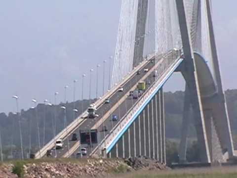 PONT DE NORMANDIE. On the way from Honfleur, I crossed this futuristic soaring 2km arch of a bridge over the Seine. Two V-shaped columns hold aloft a net of cables. It must have the steepest inclines of any bridge in the world. And shortly after, cross an almost identical bridge just before turning west to go into Le Havre.