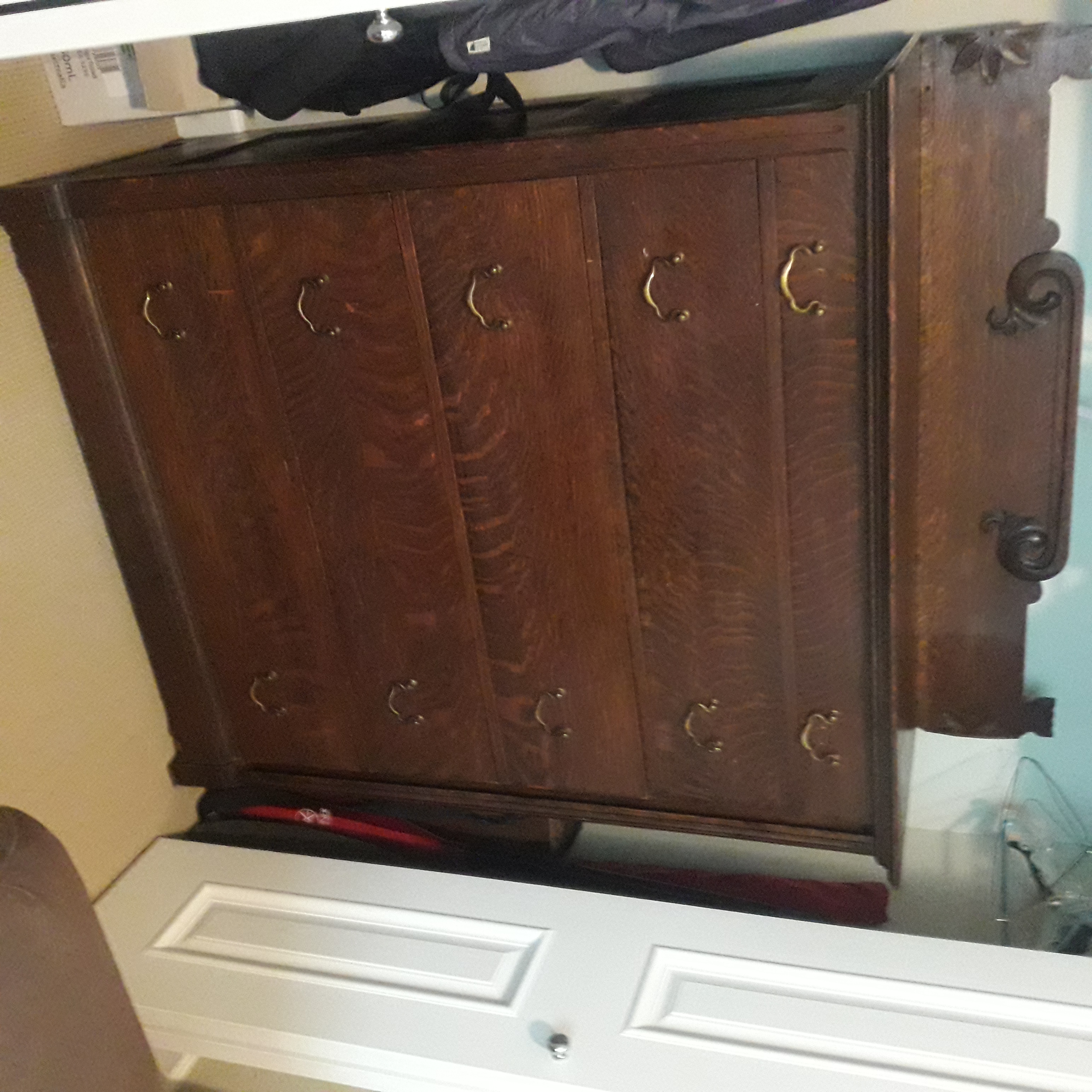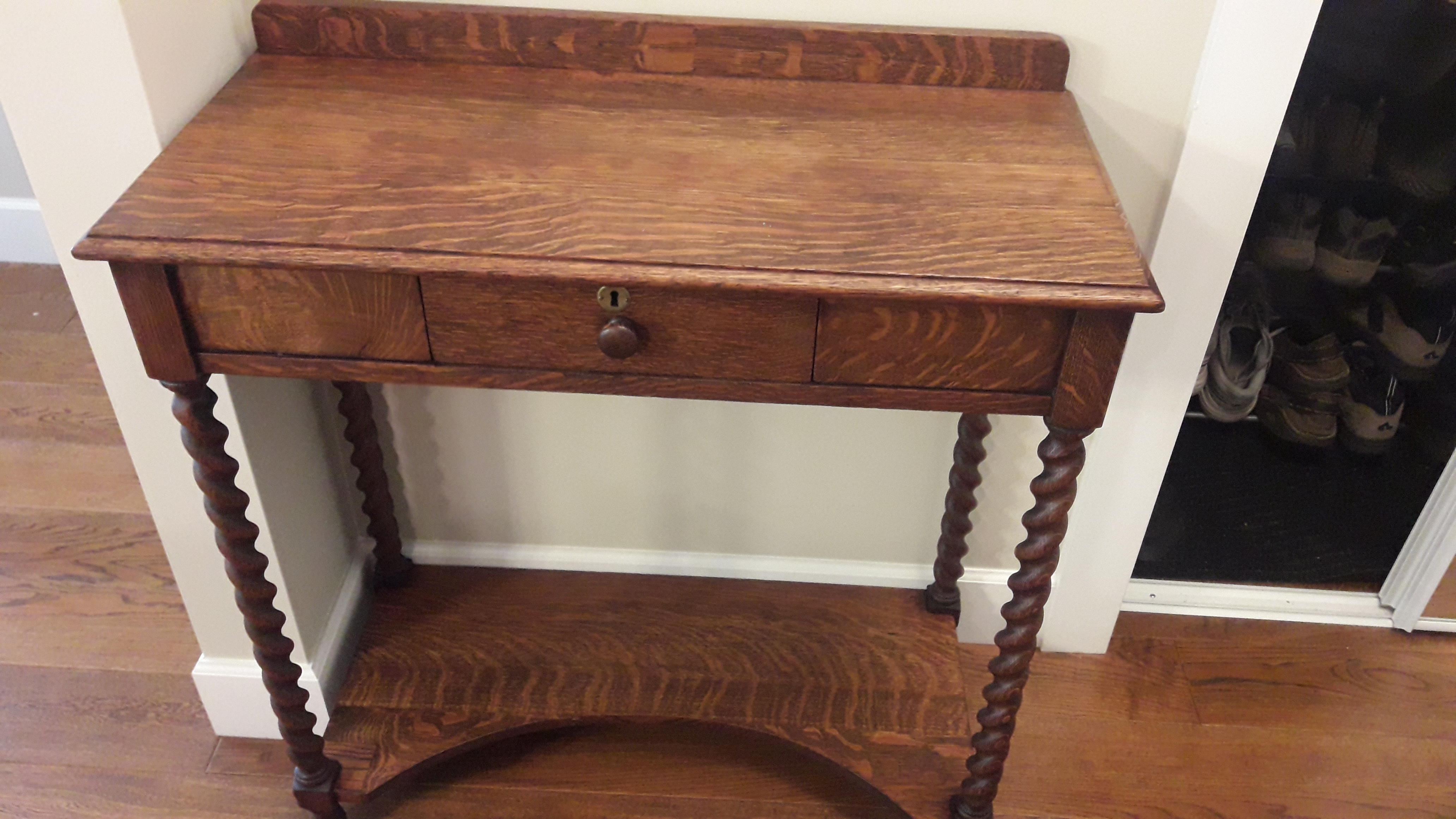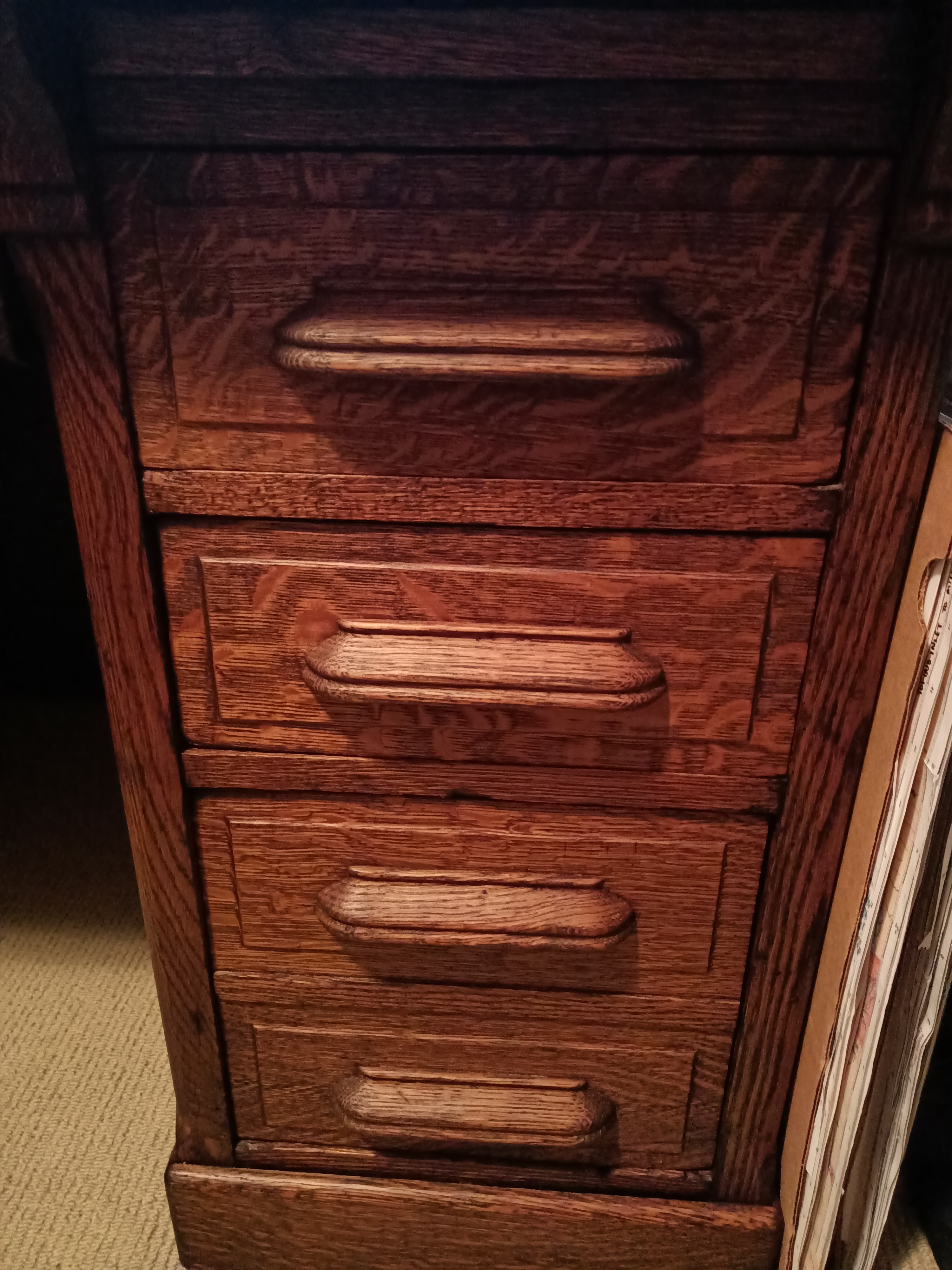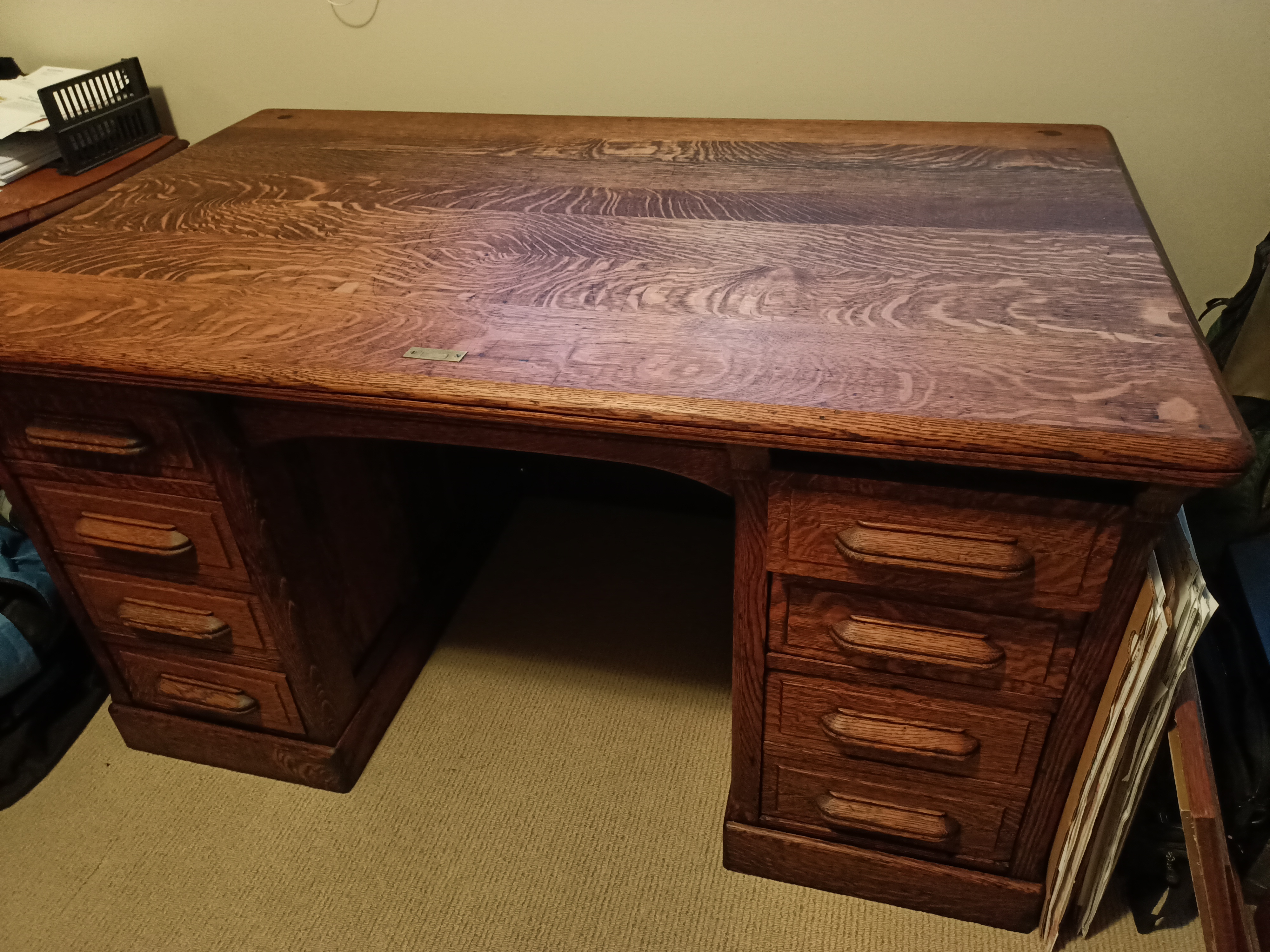 In 2010, I had my first apartment and the opportunity to furnish it in my style. I have since accumulated many pieces of quarter-sawn oak furniture, almost all Canadian-made. The grain is also called tiger oak and the boards with the best grain are combined into the pieces of furniture with the best construction – decorative cuts, solid wood skirts and drawer fronts. Most I refinish to expose the grain. The drawers are all joined with mortice and tenon joints and are of solid wood.
