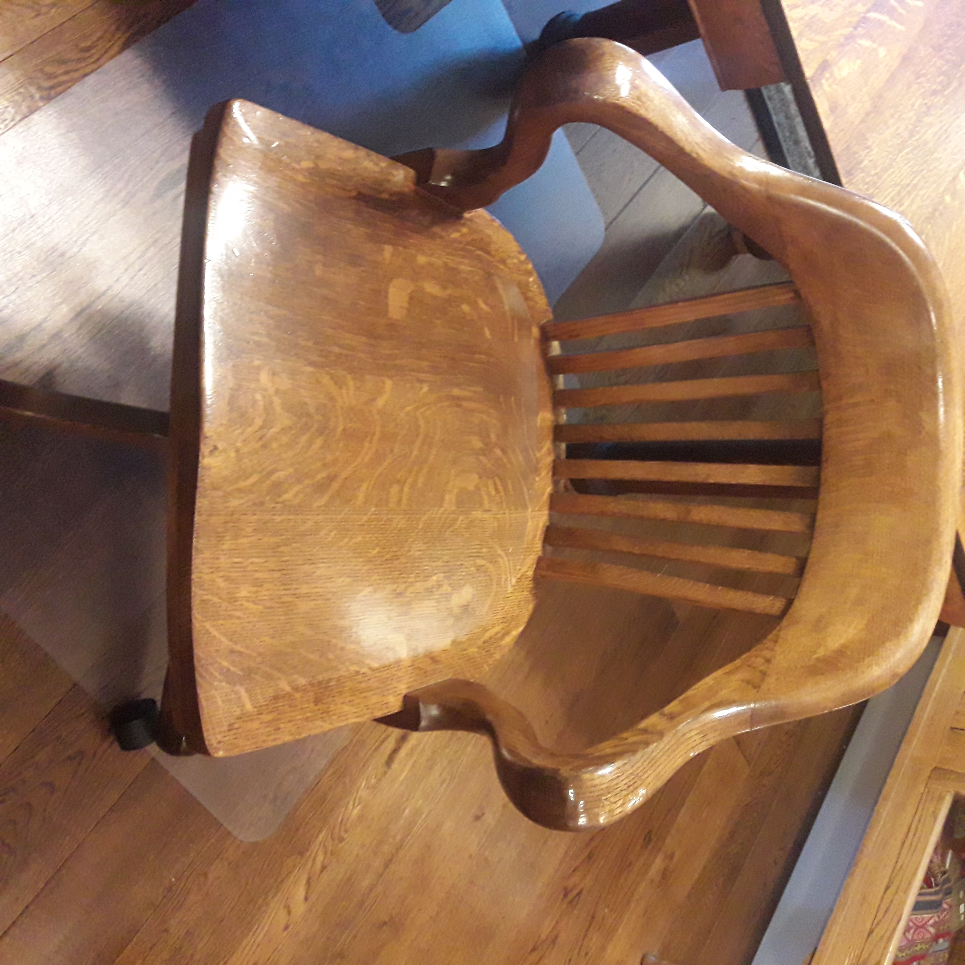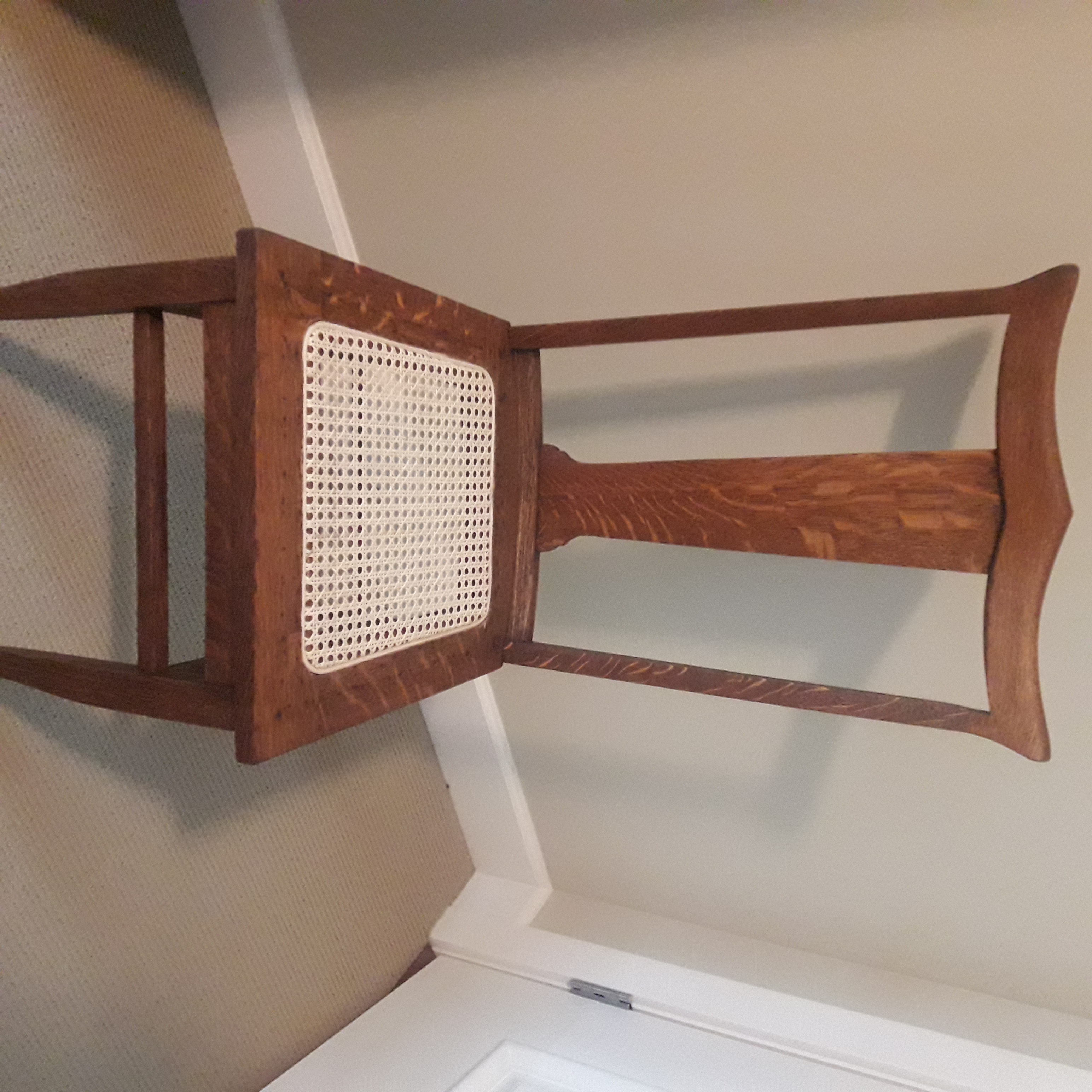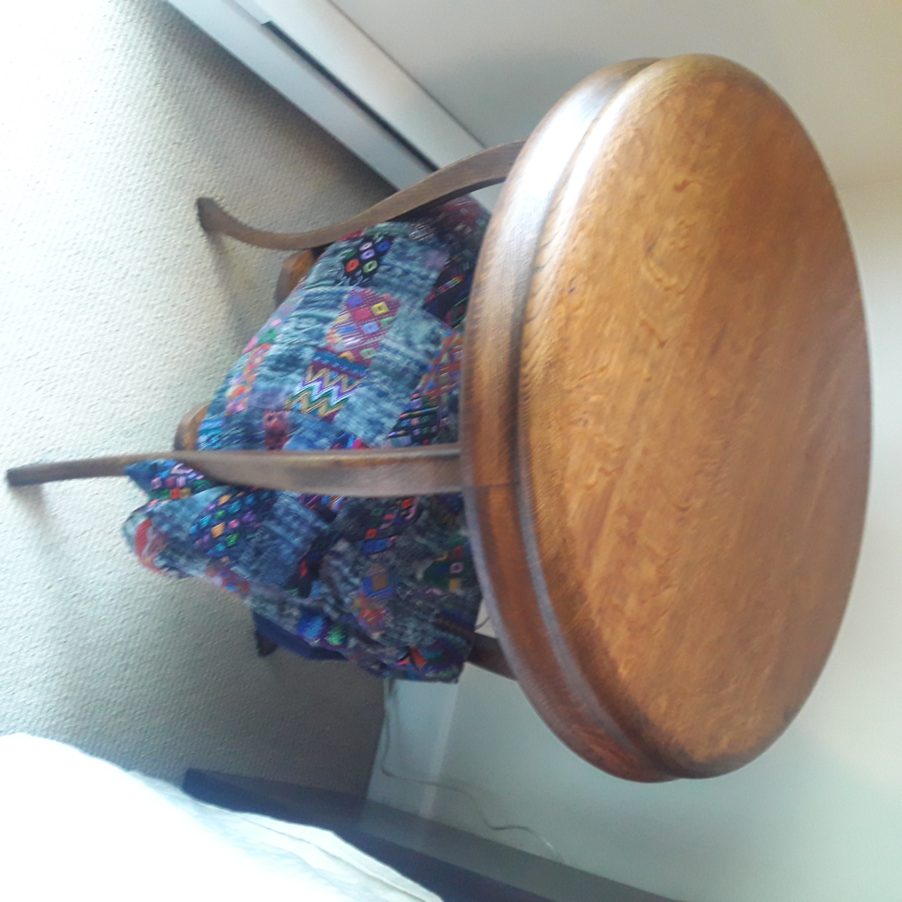 16. Desk chair, small. Cane seat originally. Had three cloth seats with over 200 nails when I bought it. I bought cane online and replaced the seat myself. Easy to do. ![]()