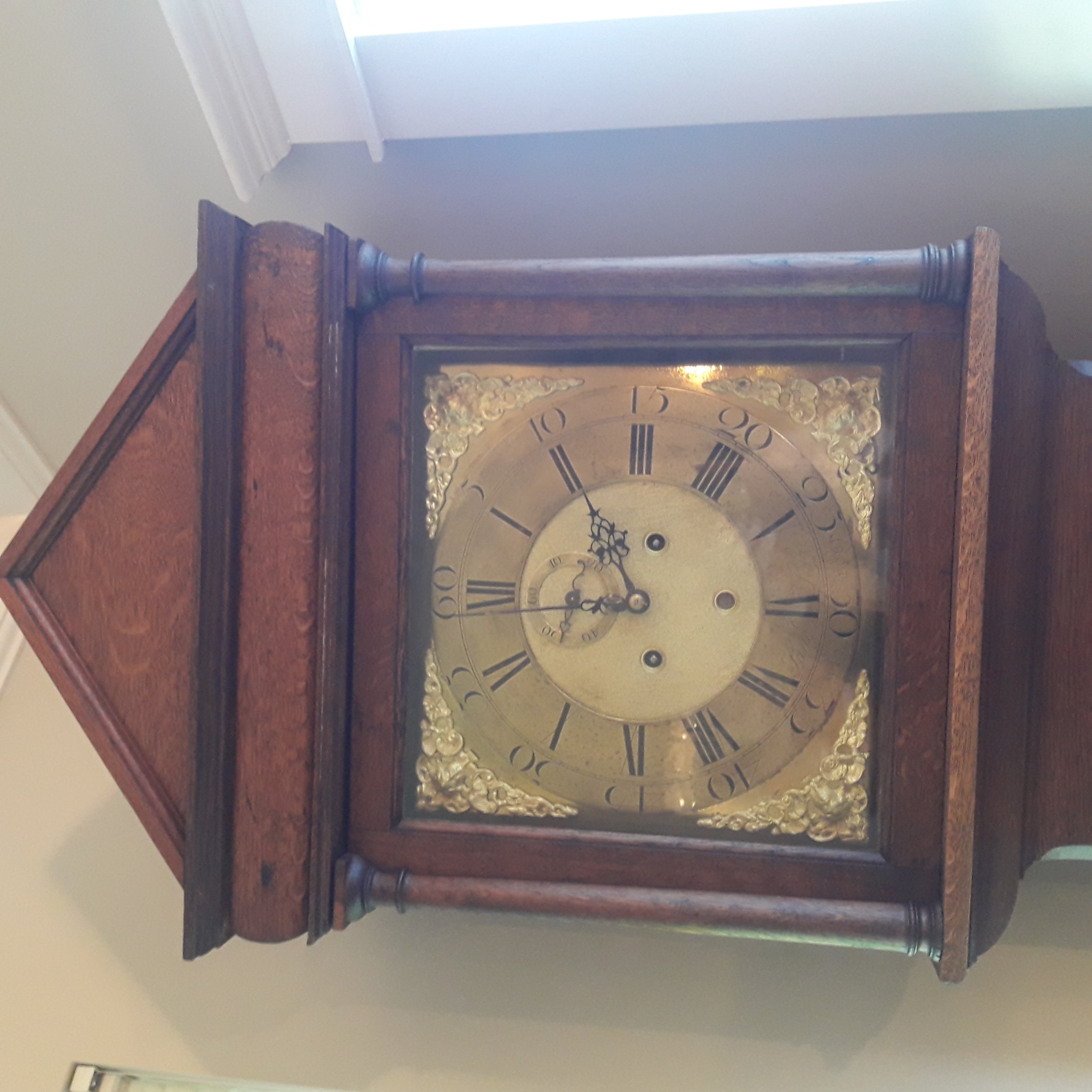 21. Sam Lahee Irish long case clock. 92″ tall, brass clock face. 1770-90. A Sam Lahee bracket clock was valued at €18,000. this is much nicer. World class.