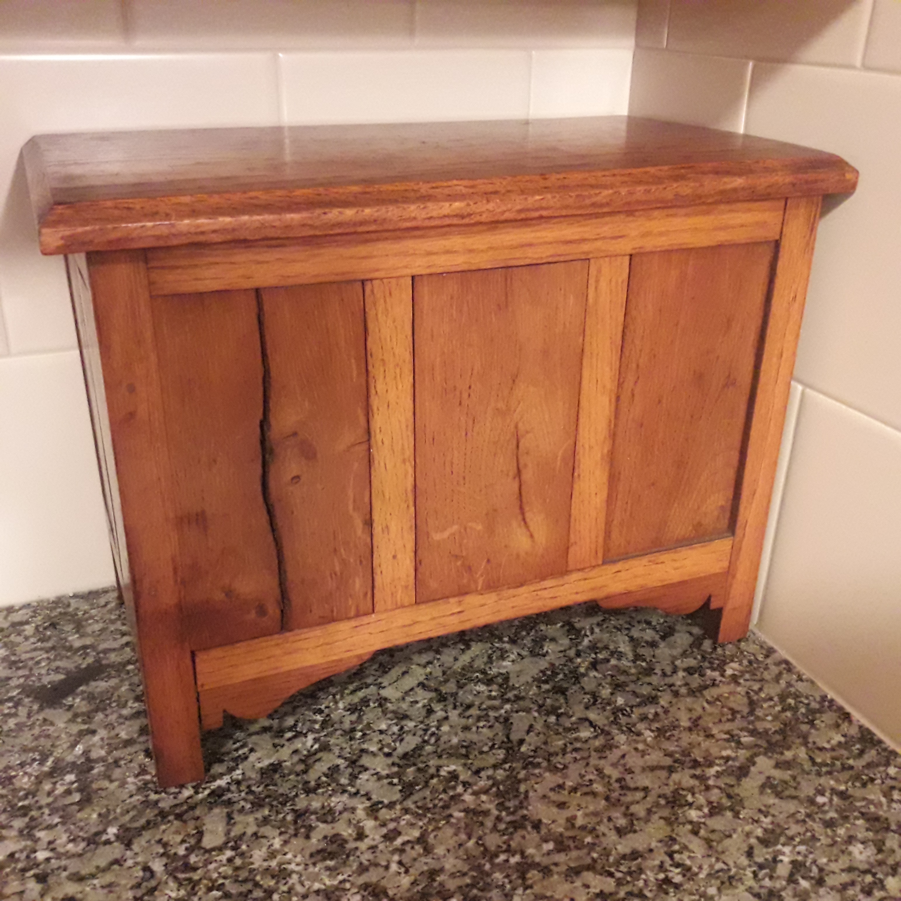 24. Small box. 14″ x 7.5″ x 10.5″ high. Perfect bread box. Lovely patina.![]()