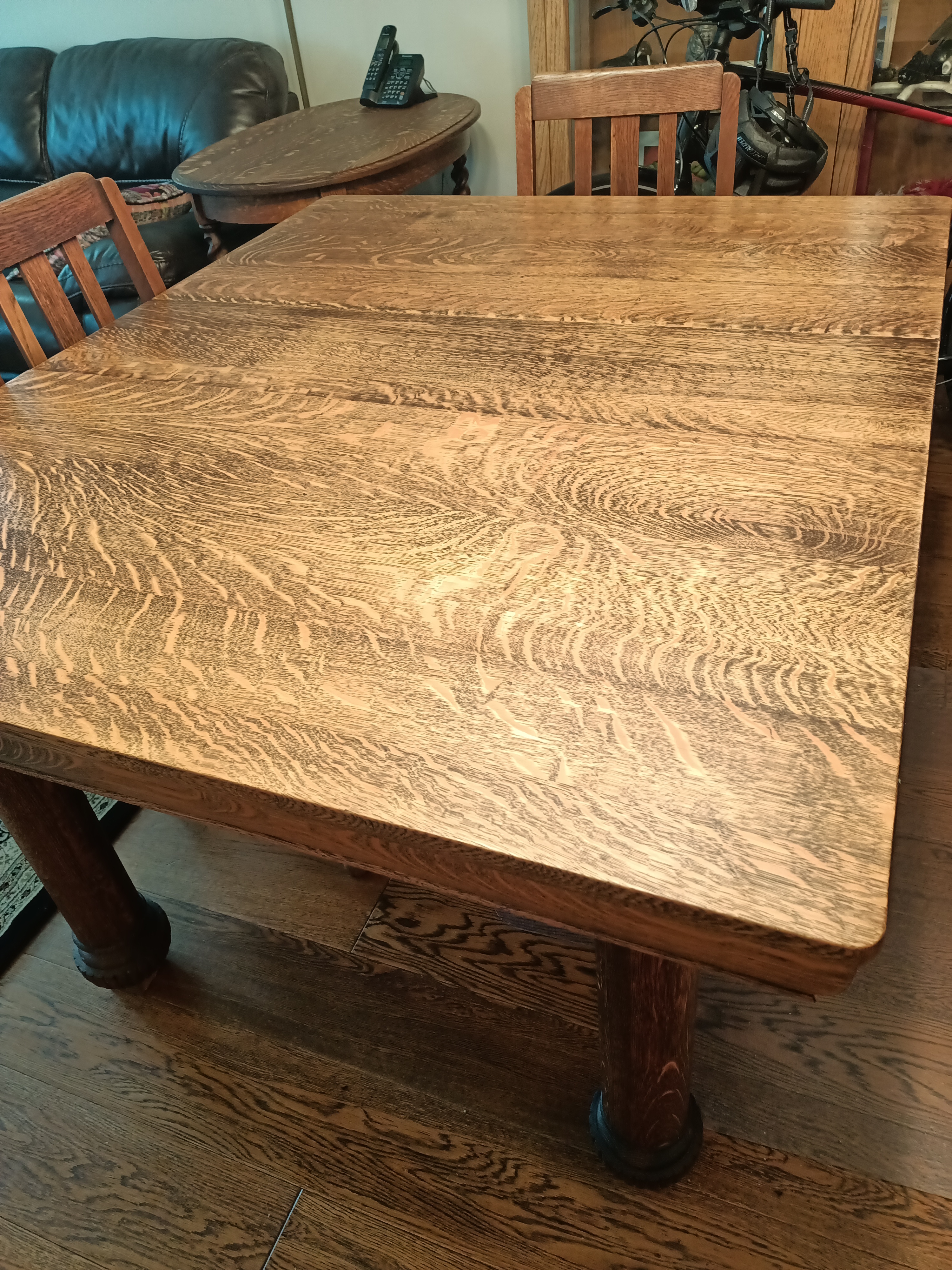 The Comox Valley has a wealth of quarter-sawn Canadian furniture. I visit two local antique stores regularly. In 2020, I added several pieces, most of world-class construction. All of a sudden, I became a collector and have now reached the saturation point of my 1.035 ft2 apartment. I recently purchased a quarter-sawn China cabinet and dining room chairs would make it all quarter cut.