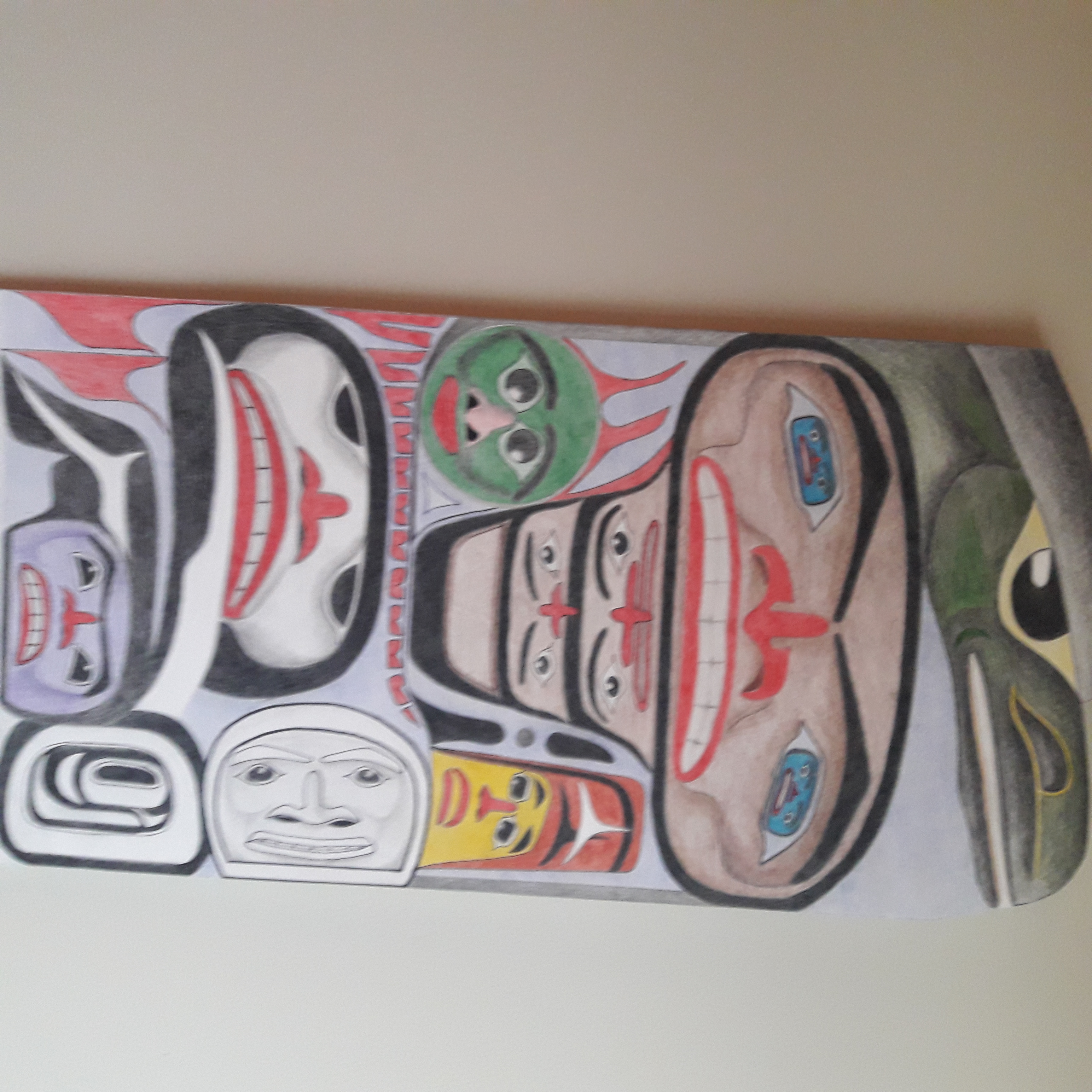 In November 2020, I was in a small art gallery in Ucluelet on the west coast of Vancouver Island. I really liked the indigenous artist Victor Michael West. I was most attracted to his bentwood boxes and a cedar wall carving entitled Raven Transformation (22 x 11”, $1500). I visited his web site and Facebook page collecting several images with elements I liked. After a friend request, we chatted for over an hour. I tried to show him the elements I liked and he sketched something but it was not really what I wanted. Victor had a large 30 x 15” piece of cedar for a plaque that he offered to do for $2500. I drew a small plaque on graft paper and sent the image to Victor. His comment was “Wow interesting layout way to think out of the box”. Raven mythology in West Coast Indian Art.