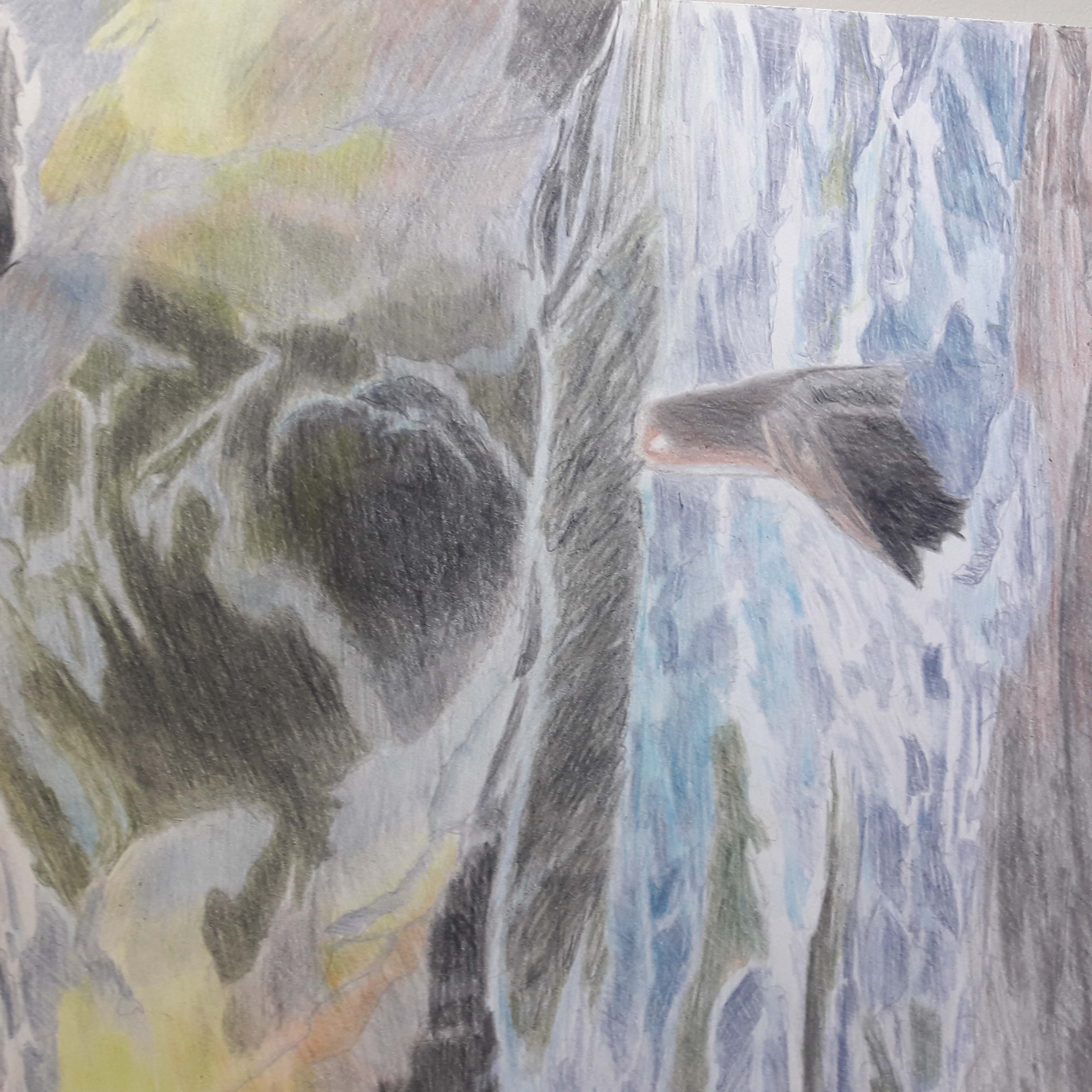 Graphite and pencil crayon on Stonehenge 140lb hot-pressed watercolour paper.
