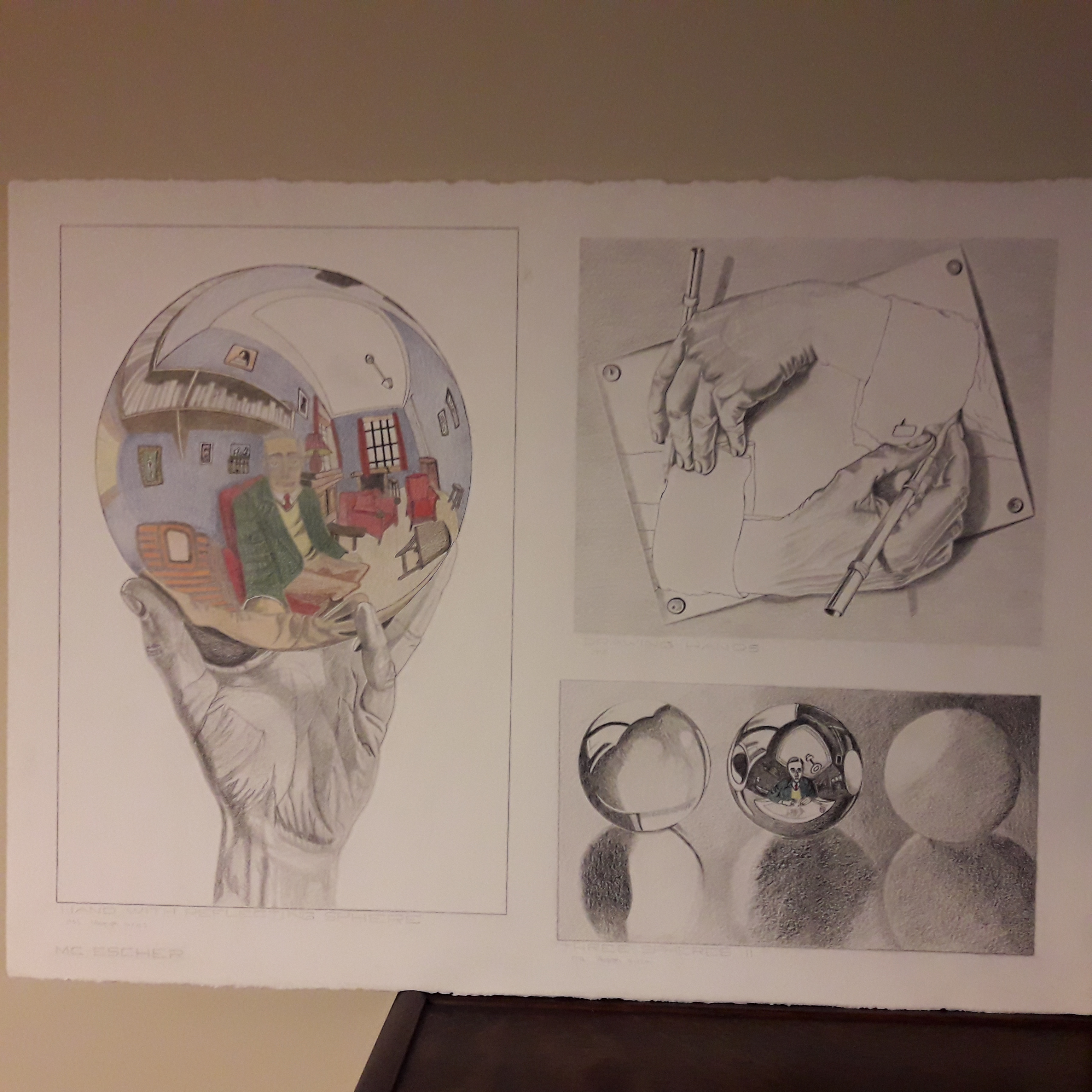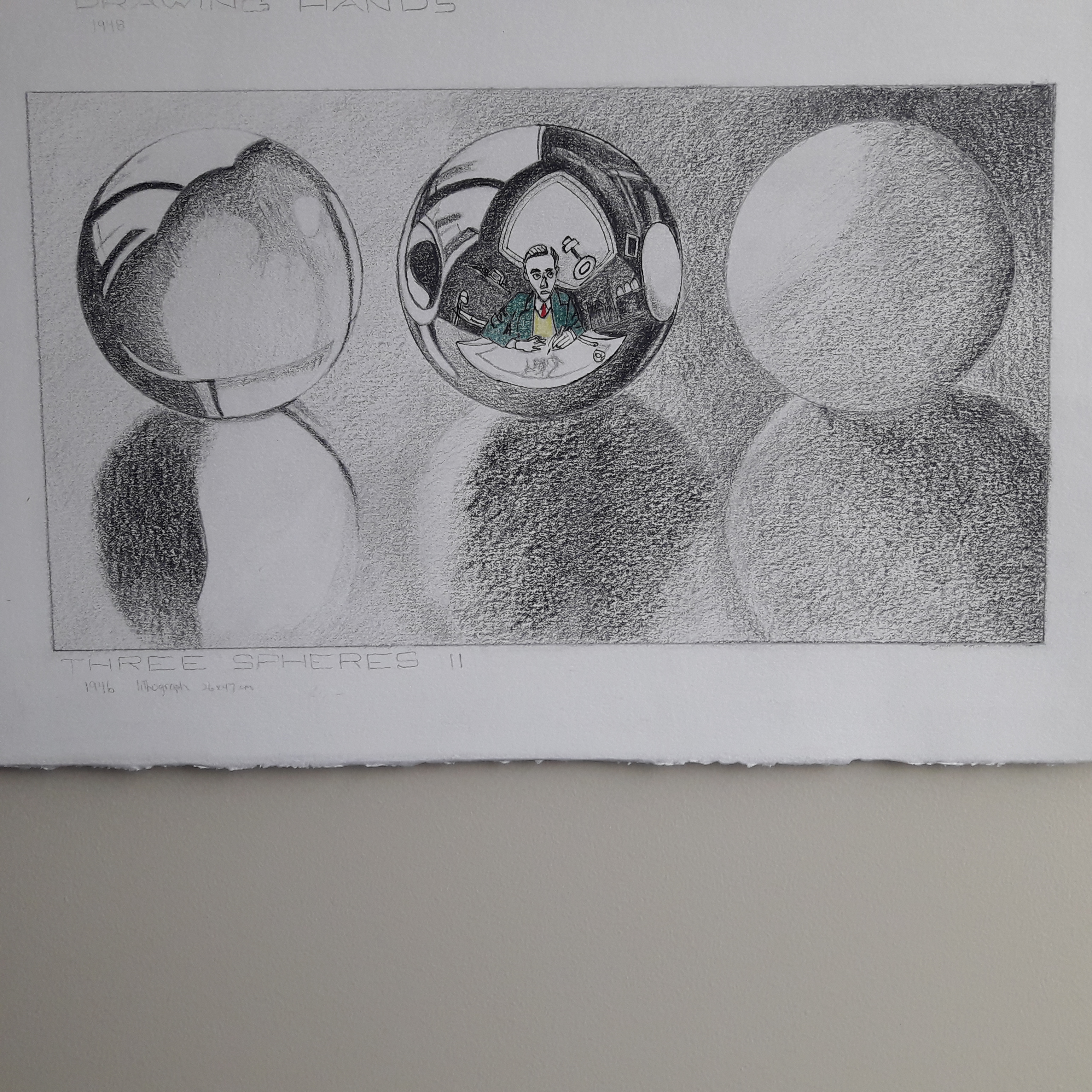 TRYPTIC Drawing Hands, Hand with Reflecting Sphere, Three Spheres II