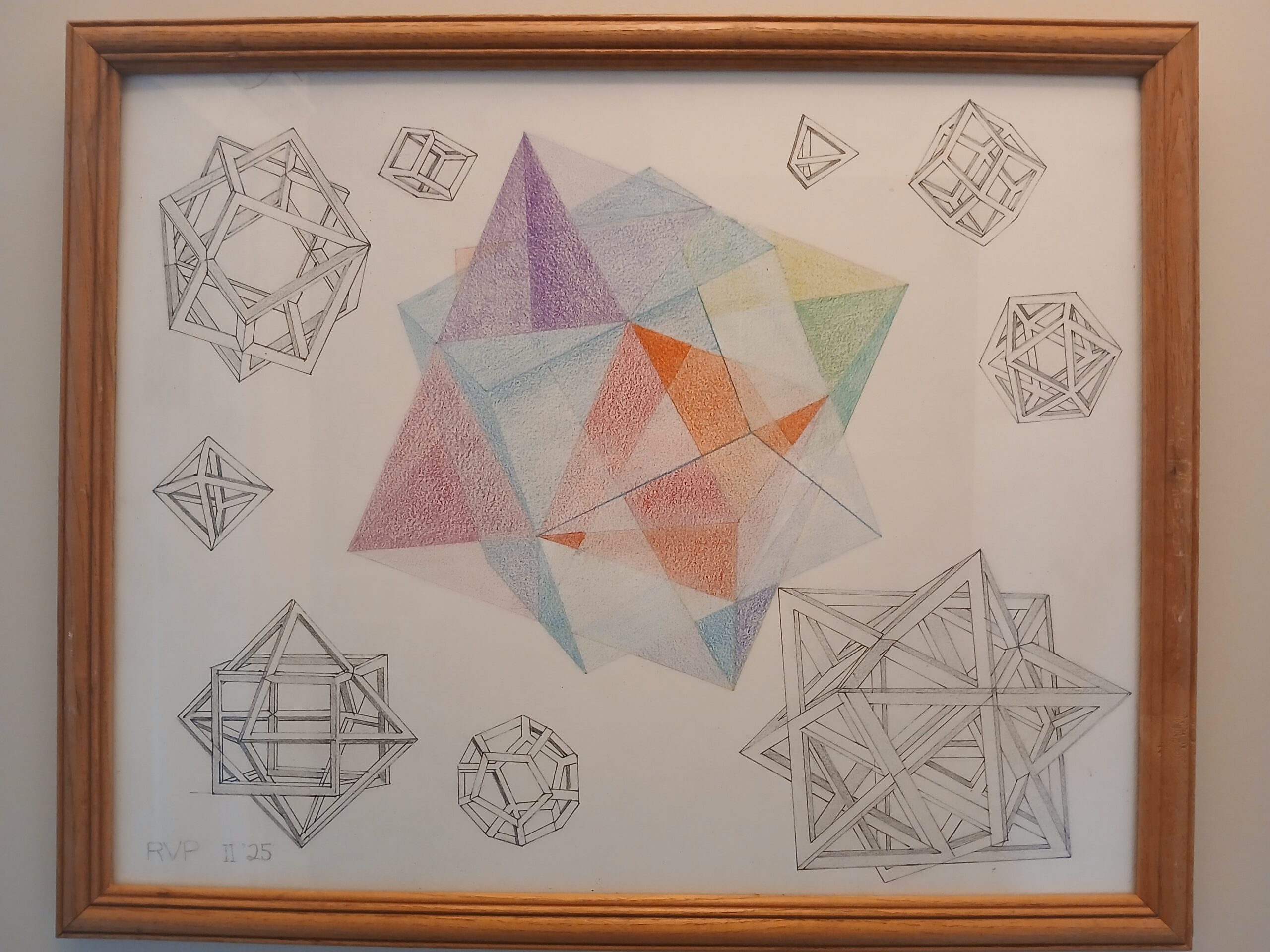 The original print of Crystal has a background of indiscipherable shapes that were not interesting. I substituted them with the impossible icosohedras of Study for Stars.