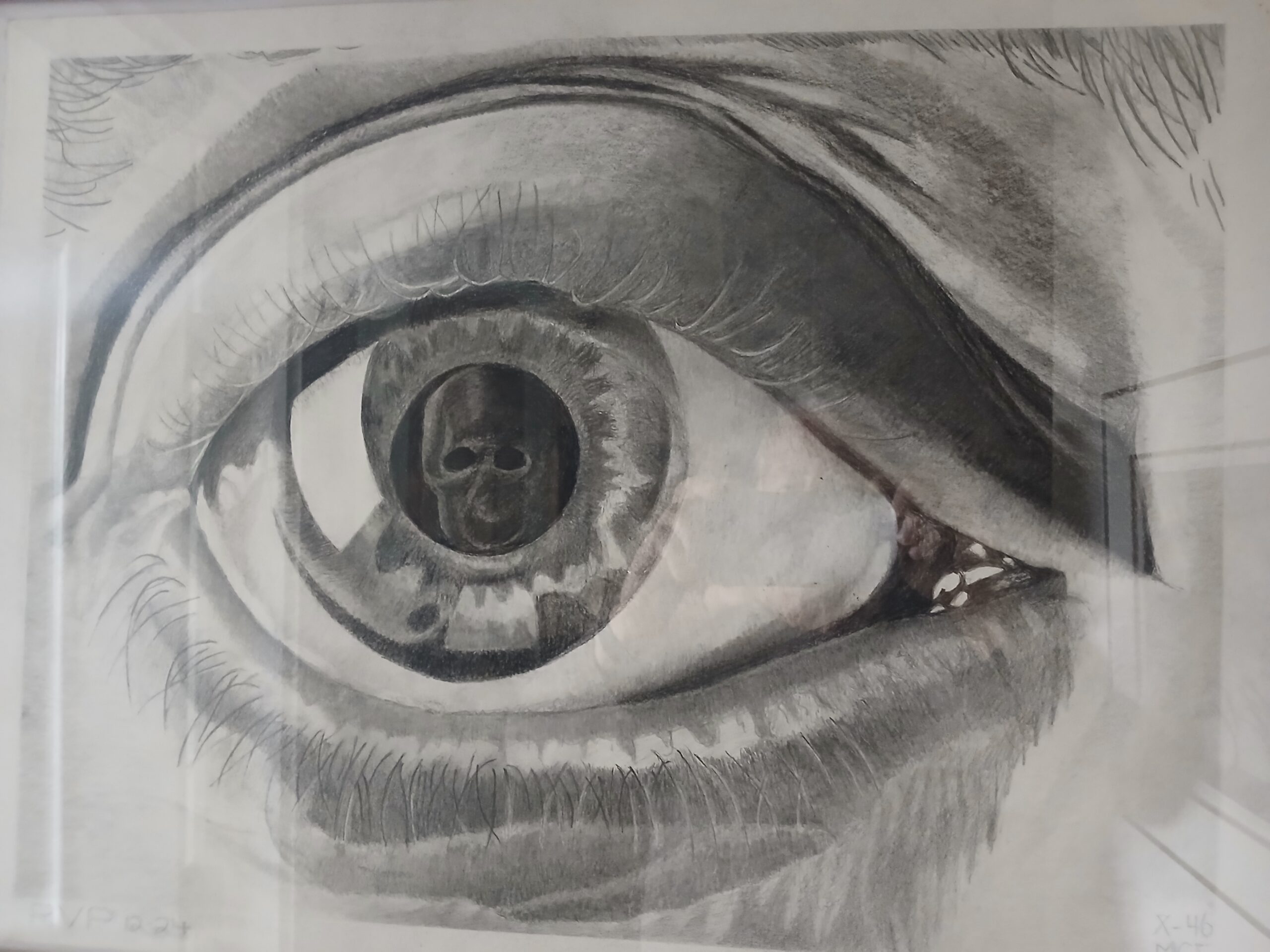 This has become my favourite drawing with a full range of deep blacks to fine shading; the lashes were particularly time-consuming. I made it the drawing on the front cover of my book “High-Functioning Asperger’s – The Source of Genius”, but am unsure what the connection is – “looking into the diversely wired brain of the autistic”.