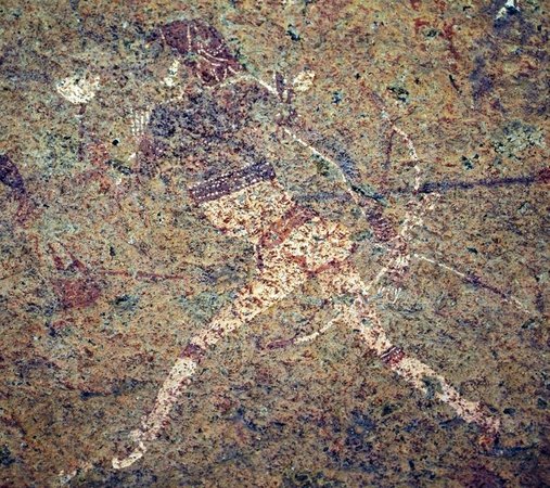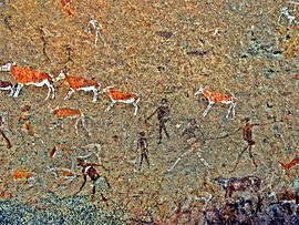 It has the finest remnants of African art, a pictograph, at Tsisab Ravine. The White Lady of the Brandberg is a 40cm figure, part of a bizarre hunting procession. They were produced between 7000 and 4000 years ago. There are several beautifully drawn animals with wonderfully preserved colour: oryx, a wildebeest, zebra, springbok and human figures,